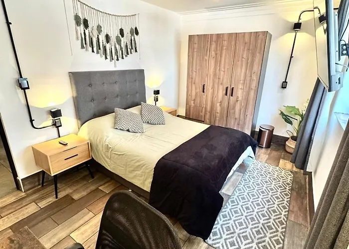 Large, Bright Apartment 1 Mexico offre un accès facile à des sites touristiques tels que le Pericentro, situé à moins de 5 minutes de marche. L'appartement est équipée d'un salon commun avec vue sur le jardin.